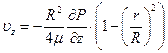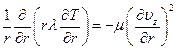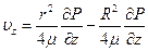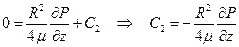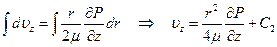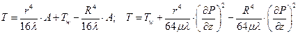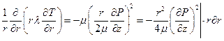 Знак “-” показывает на то, что жидкость течёт в направлении уменьшения давления. Подставляя полученное выражение для uz в уравнение энергии, можем найти температуру.