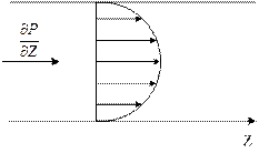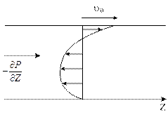 | | Это наиболее простой вид течения – безнапорного течения, при котором верхний слой жидкости увлекается движущей пластиной, а нижележащие слои приходят в движение за счёт наличия сил трения. |