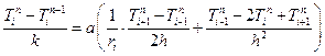 Введём сетку по r и t и запишем производные, входящие в уравнения и Г.У. в разностном виде: