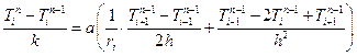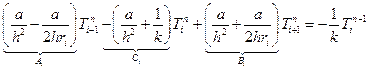При использовании неявной разностной схемы на каждом временном слое решается система линейных алгебраических уравнений с матрицей коэффициентов (5.16), которые неизменны, подставляя в правую часть столбец известных значений (поле температур) с предыдущего временного слоя.