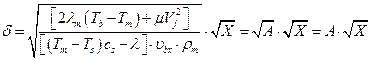 Обозначим ширину твёрдого слоя X. Необходимо получить зависимость