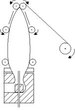 Наложение изоляции на провода и кабели явилось одной из первых областей применения экструзии. Металлический провод подаётся к фильере с отдающего устройства.
