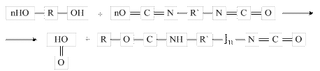 Без выделения низкомолекулярных продуктов образуются, например, полиуретаны из диолов и диизоцианатов, но тоже по ступенчатому механизму: