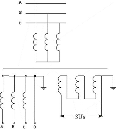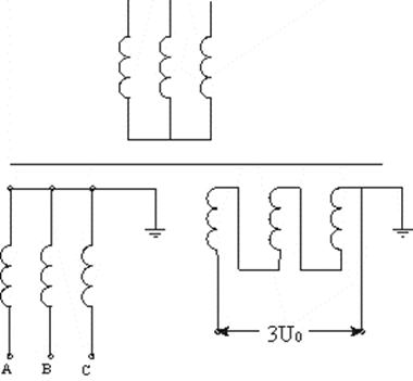 ТН имеет две вторичные обмотки-звезда и разомкнутый треугольник. На выходе последнего мы получим 3U0 при авариях, когда выделяется нулевая последовательность.