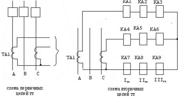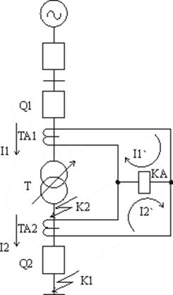 Эта схема используется специально для дифференциальной защиты трансформатора.