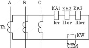 Защита от перегрузки может устанавливаться только в одной фазе, т.к перегрузки обычно симметричны. Несимметричные перегрузки трансформатор переносит легко. На необслуживаемых подстанциях защита от перегрузки действует на отключение неответственных потребителей. И лишь после этого отключается защищаемый трансформатор, если перегрузка не устранилась.