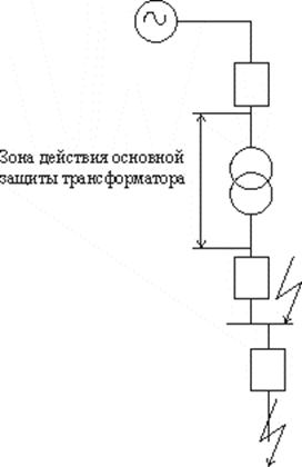 ДЗ защищает трансформатор от К.З в зоне между двумя ТТ. Поэтому эта защита с абсолютной селективностью. Кроме того, она защищает трансформатор и от витковых замыканий. На трансформаторе мощностью менее 4 МВ·А для защиты от К.З устанавливается токовая отсечка.