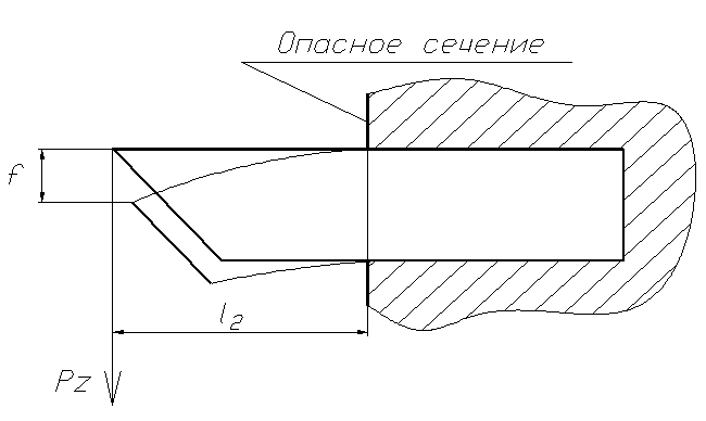 Напряжения изгиба s, возникающие в опасном поперечном сечении державки резца под действием силы Pz, не должны превышать их допустимые значения [s]: