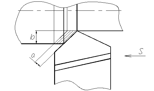 Можно предложить несколько вариантов таблиц выбора поперечного сечения державки резца от параметров процесса резания, например, от площади поперечного сечения срезаемого слоя F = a * b (см. рис. и табл.).