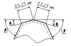 2. Двойная заточка. Снимаются проблемы при одинарной заточке. Широко применяется, но при доводке происходит задевание стали корпуса.