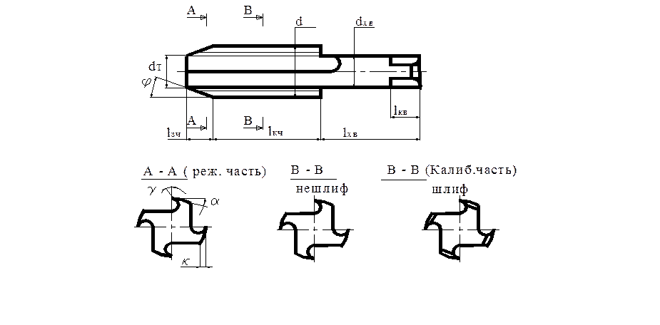 Заборная часть lзч является главной режущей частью метчика. Калибрует резьбу только малая часть lкч.