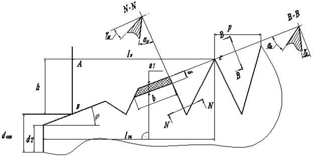Расчет метчика. Сводится к определению угла j на заборном конусе: