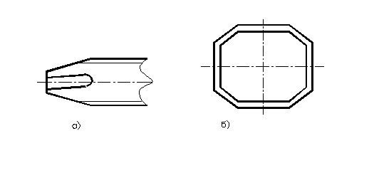 а) метчик для нарезания резьбы, у которого канавка выполнена только на заборной части.
