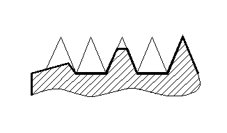 Чтобы осуществить такую схему резания необходимо резьба на заборной части была изготовлена с меньшим значением среднего диаметра, а на lкч с большим значением среднего диаметра.
