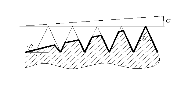 При этом контакт профиля зубьев метчика будет происходить на толщине срезаемого слоя а, в остальных частях будут наблюдаться боковые зазоры 2 - 30.