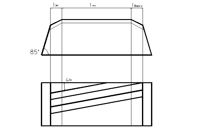 Из схемы формирования профиля резьбы следует,что при использовании 2) остаются гребешки высотой hr не срезанными. Эти гребешки должны повышать шероховатость резьбы, но из практики шероховатость резьбы образуется с помощью 2) даже меньше, чем при использование нормального метчика. Это объясняется тем, что каждый зуб метчика на lзч не портит часть профиля (поверхности), которая формируется предыдущем зубом. Кроме того расчеты показывают, что
