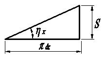При сверлении каждая точка режущей кромки движется по винтовой линии. Угол наклона винтовой линии для точки Х режущей кромки сверла hX, определяется из развёртки винтовой линии на плоскость из треугольника: