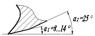 Малые значения угла ω согласно формулес4) приводят к малым углам в районе перемычки сверла, фактически к отрицательным передним углам в районе перемычки.