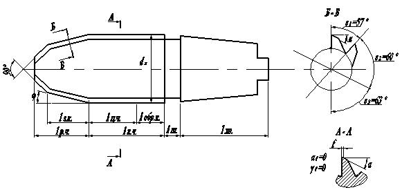 На калибрующей части оставляется цилиндрическая фаска: f = 0,05…0,1 мм.