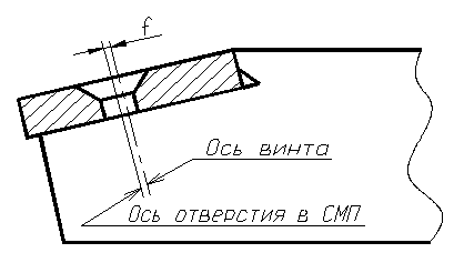 Схема S – крепление винтом с конической головкой (рис. 4.19): для СМП с коническим отверстием, рекомендуется для небольших резцов на станках с ЧПУ и универсальных станках. Ось винта смещена по отношению к оси отверстия СМП в сторону опорной базы на величину f.