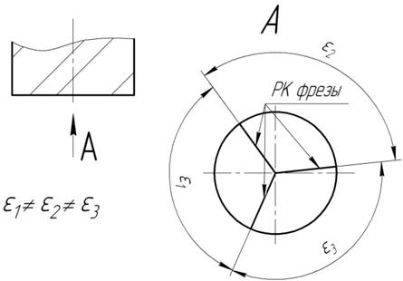 Угловой шаг зубьев концевых фрез (как крупнозубых так и мелкозубых) может быть выполнен неравномерным что способствует уменьшению вибраций при фрезеровании (рис. 5.12).
