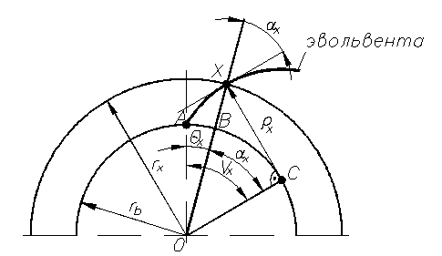 ρx- мгновенный радиус кривизны эвольвенты в точке X;