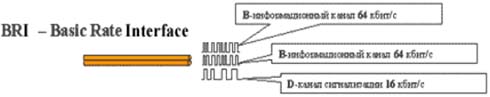ISDN BRI — подключение предоставляет два информационных канала, пропускной способностью 64 Кбит/с и один канал сигнализации.