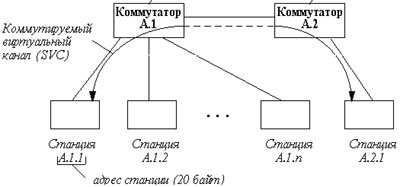 При приоритетном обслуживании мультимедийного трафика коммутаторами сети, его пакеты будут вынуждены даже при дисциплине относительных приоритетов ожидать в худшем случае в течение небольшого и фиксированного времени - времени передачи пакета из 53 байт, что при скорости в 155 Мб/с составит менее 3 мкс. Для того, чтобы пакеты содержали адрес узла назначения и в то же время процент служебной информации не был большим по сравнению с размером поля данных пакета, в технологии ATM применен стандартный для глобальных вычислительных сетей прием — эти сети всегда работают по протоколу с установлением соединения и, адреса конечных узлов используются только на этапе установления соединения. При установлении соединения ему присваивается текущий номер соединения и в дальнейших передачах пакетов в рамках этого соединения (то есть до момента разрыва связи) в служебных полях пакета используется не адрес узла назначения, а номер соединения, который намного короче.