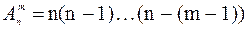 из n элементов по m равно произведению m натуральных чисел, большее из которых равно n, т.е.