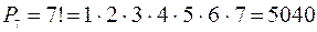 Решение. Исходное множество содержит 7 элементов, т.е. n = 7. Выбираемые подмножества тоже содержат 7 элементов, т.е. m = 7. Поскольку n = m = 7 и получаемые множества будут различаться порядком, нужно использовать формулу перестановок.