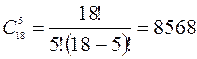 Найдем сколькими способами можно достать 5 красных карт. Исходное множество содержит 18 элементов (так как в колоде 18 красных карт), т.е. n = 18. Вынимают 5 карт, т.е. m = 5. Из условия задачи видно, что порядок в получаемых подмножествах не имеет значения, поэтому используем формулу сочетаний