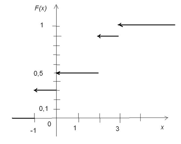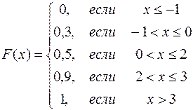 а) x ≤ –1, тогда F(x) = P (X < –1) = 0,так как X не имеет значений, меньших –1;
