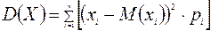 Дисперсией D(X) случайной величины Х называется математическое ожидание квадрата отклонения случайной величины от ее среднего значения, т.е. D(X) = M(X – M(X))2.