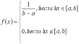 Случайная величина Х называется равномерно распределенной на отрезке [a, b], если плотность распределения вероятности этой величины постоянна на отрезке [a, b] и равна нулю вне этого отрезка.