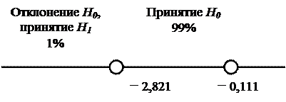 с помощью функции СТЬЮДРАСПОБР(2(0,01); 9), получаем