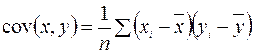 Выборочной ковариацией двух переменных х, у называется средняя величина произведения отклонений этих переменных от своих средних, т. е.