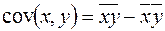 Ковариацию можно вычислить с помощью функции Excel КОВАР(массив1; массив2), где Массив 1 и 2 ¾ это значения x и y.