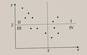 Наблюдения в областях I, III дают положительный вклад в ковариацию, а в областях II, IV — отрицательный.