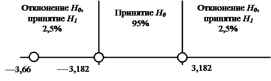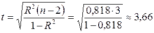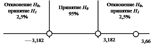 определяем с помощью функции СТЬЮДРАСПОБР(0,05; 3) и получаем