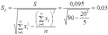Вычисляем стандартную ошибку S с помощью функции СТОШYX(изв_значение_y; изв_значение_x). Получаем