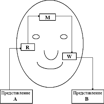 Чтобы понять природу ошибок при переводе рассмотрим модель [2.3], изображенную на рис.2.2. На ней человек осуществляет перевод информации из представления A в представление B. При этом он совершает четыре основных шага перевода: