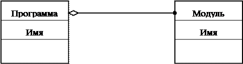 Для описания декомпозиции объектов используется отношение вида агрегирования. Например, отношение «программа состоит из одного или нескольких модулей» представлено на рис. 15.3.
