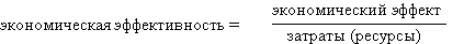 Экономическая эффективность — это относительный показатель, соизмеряющий полученный эффект с затратами, обусловившими этот эффект, или с ресурсами, использованными для достижения этого эффекта: