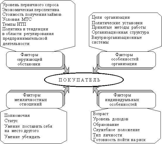 Кроме того, продавец товаров промышленного назначения должен разбираться в таких факторах, влияющих на принятие решения о закупке, как: