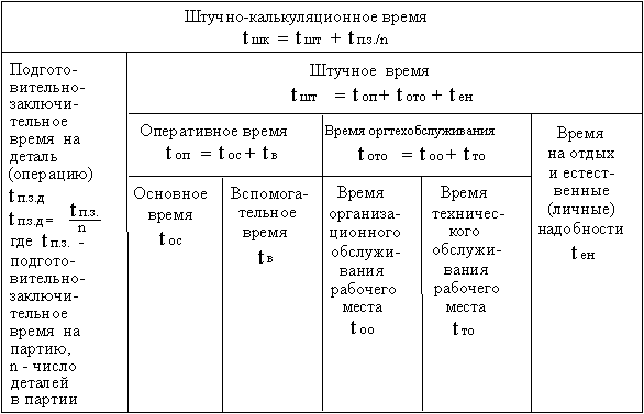 Рис. 8.11. Структура штучно-калькуляционного времени