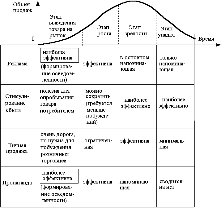 Эффективность средств стимулирования бывает разной в зависимости от этапа жизненного цикла товара (рис. 11.5).