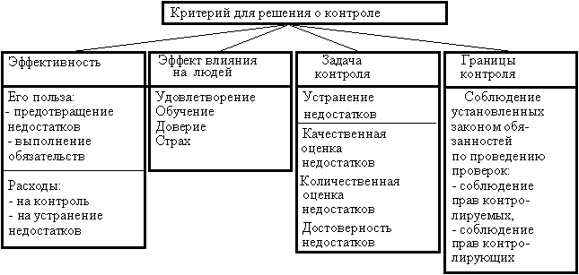 Для принятия решения о контроле и организации процессов контроля могут иметь значение ряд критериев: его эффективность, эффект влияния на людей, задачи контроля и его границы (рис. 13.9).