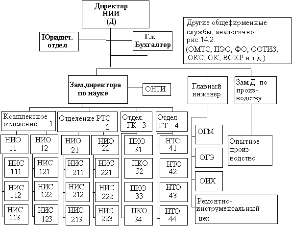 Типовые организационные структуры управления предприятия (фирмы) и НИИ приведены на рис 14.2 и 14.3.