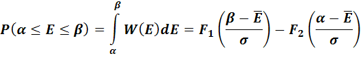 - табличные функции, которые приводятся в математических справочниках, поэтому располагая величинами, приведенными в скобках 𝛽, 𝛼, σ, E – определяем вероятность того, что величина эффективности будет находиться в заданных пределах.