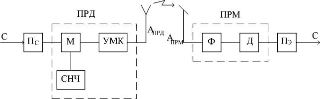 Упрощенная структурная схема радиолинии.